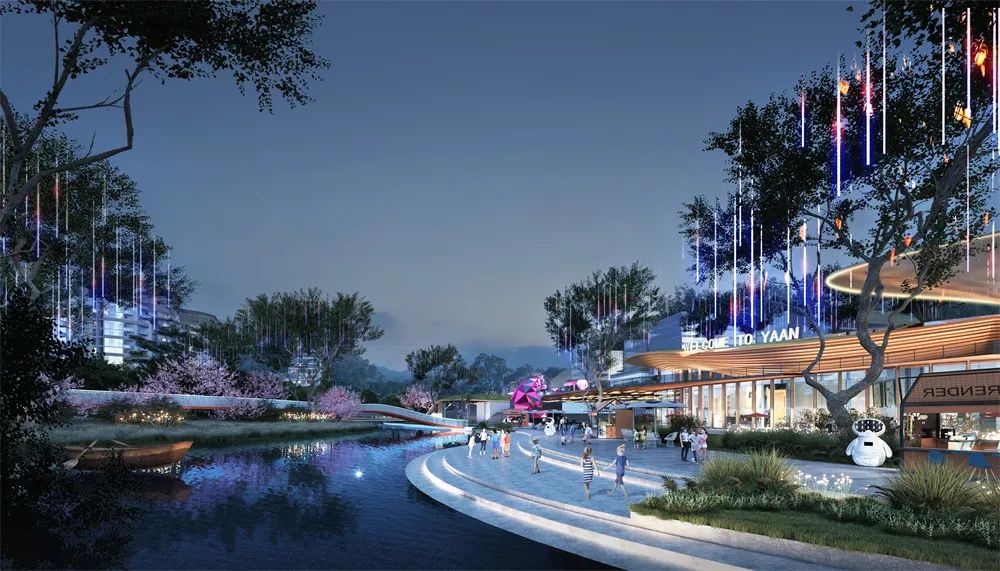 結(jié)合“雅樂匯”服務(wù)商業(yè)空間,打造夢幻的戶 外水幕劇場、休閑水岸、藝術(shù)燈光營造,展現(xiàn)出人文星河、商旅共榮、生機同棲的盛世畫卷,在這里感受雅安的風物、人文意趣,感知雨潤雅安帶來的萬物豐澤、盛世民安。