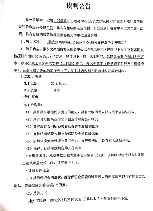大興順路社區(qū)服務(wù)中心基坑支護(hù)及降水工程——競(jìng)爭(zhēng)性談判