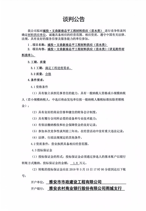 城投·文曲新座總平工程材料供應(苗木類)競爭性談判公告