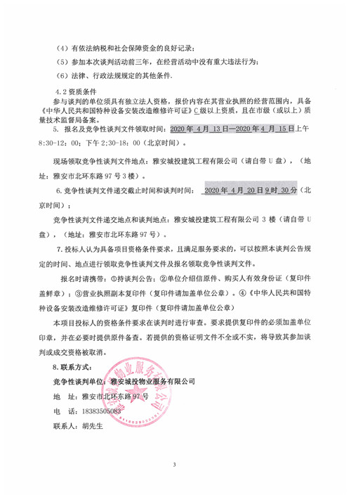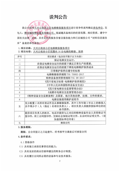 城投物業(yè)公司大興公租房小區(qū)電梯維保服務(wù)項(xiàng)目競(jìng)爭(zhēng)性談判公告(第二次)