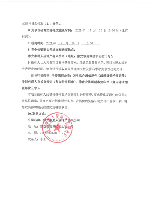 黎明人居公司黎明·蒙頂壹號(hào)臨時(shí)售樓部裝飾裝修競(jìng)爭(zhēng)性磋商公告