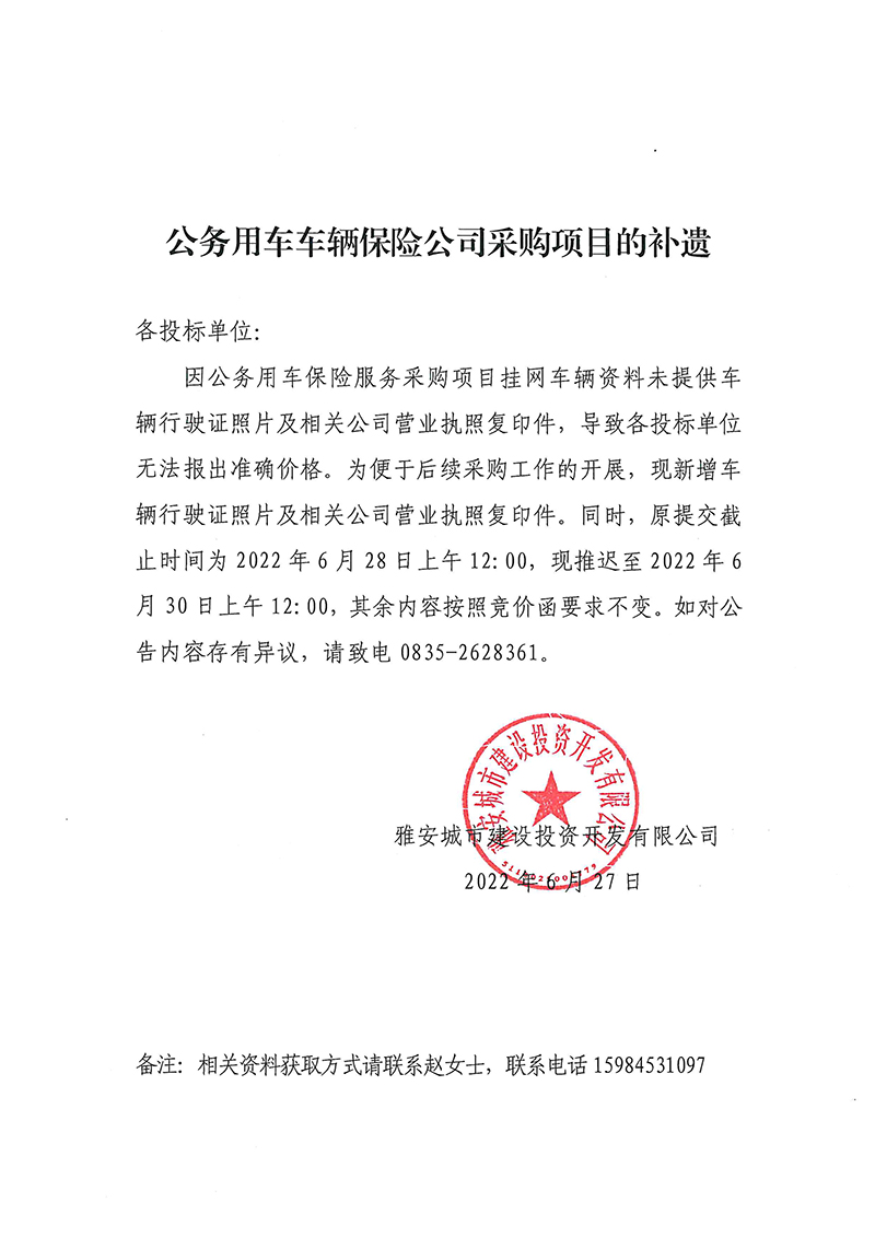 公務(wù)用車(chē)車(chē)輛保險(xiǎn)公司采購(gòu)項(xiàng)目的補(bǔ)遺